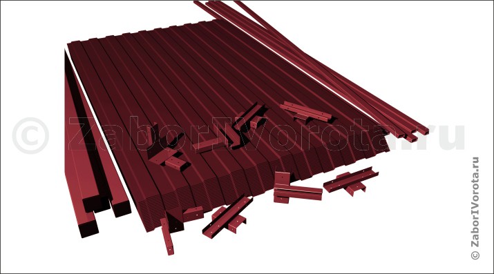 Цена забора из профнастила С8 складывается из стоимости лаг забора, профнастила и саморезов.