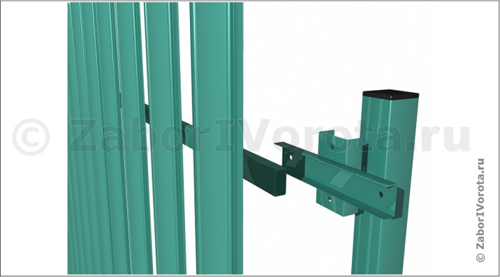На опорные столбы сначала крепят горизонтальные лаги из профильной трубы 20х40 мм при помощи крепежа для столбов и лаг. Такой способ крепления позволяет обходиться без сварных работ, что существенно сокращает стоимость установки.