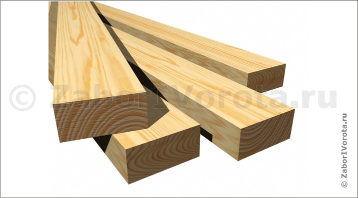 В качестве заборных лаг такого вида применяется брус различного сечения: 40х80 мм, 40х70 мм, 40х60 мм. Лаги из дерева крепят к заборным столбам при помощи металлических уголков. К лагам монтируют заборные доски при помощи гвоздей или саморезов. Заборная доска устанавливается в соответствии с выбранной моделью: в шахматном порядке по обе стороны заборных лаг, с просветом между досками или вплотную. Для постройки заборов типа "Лесенка" или «Елочка» лаги крепят вертикально по обе стороны от опорных столбов. Заборную доску на пролеты забора устанавливают горизонтально, внахлест на несколько сантиметров, под небольшим углом к столбу.